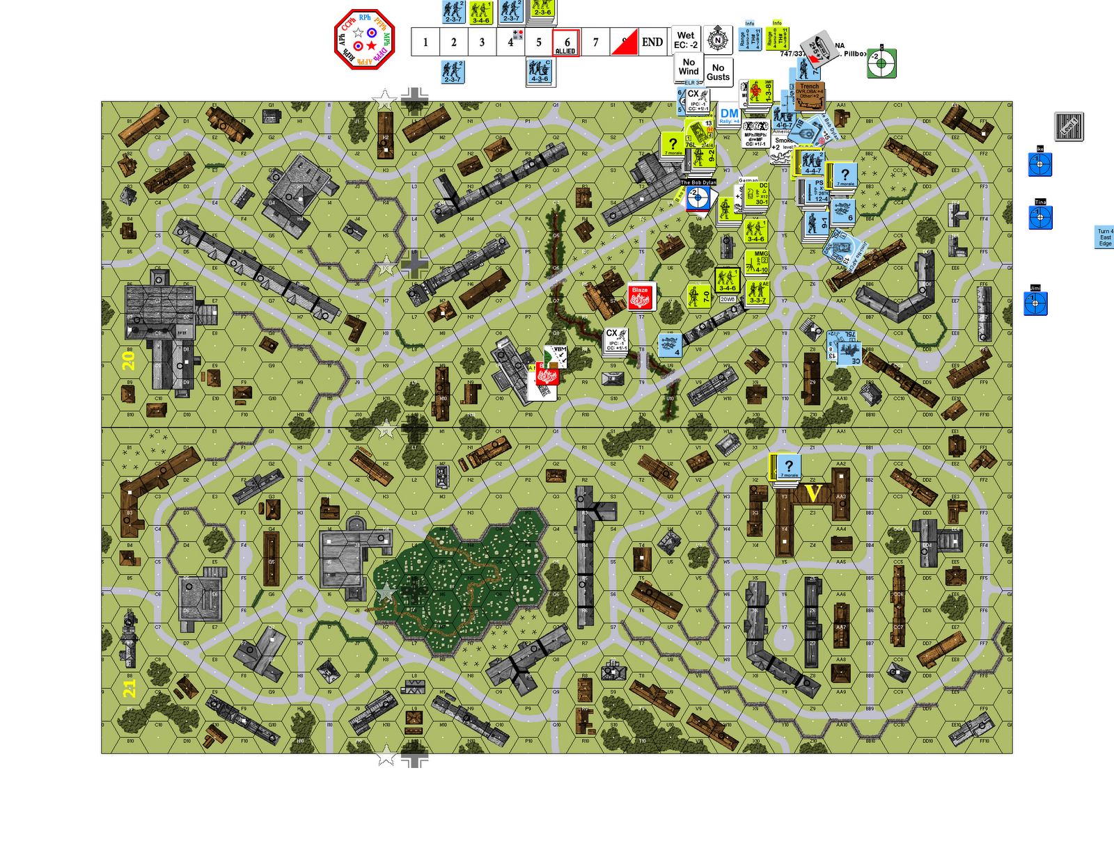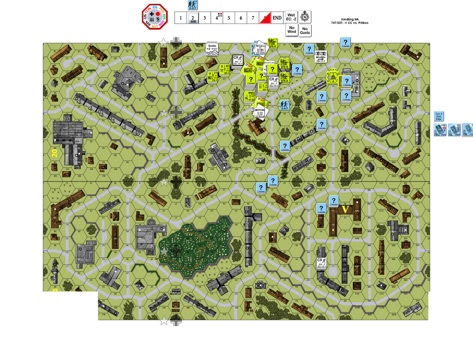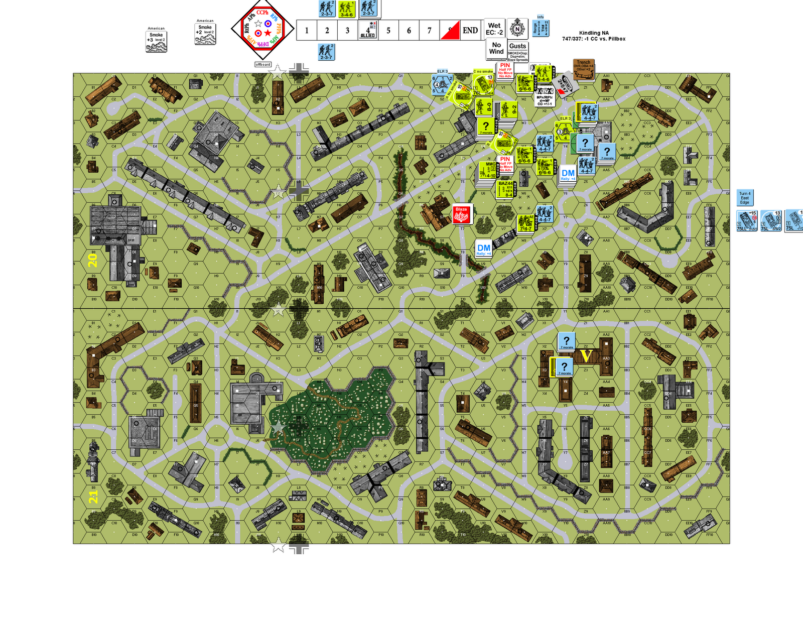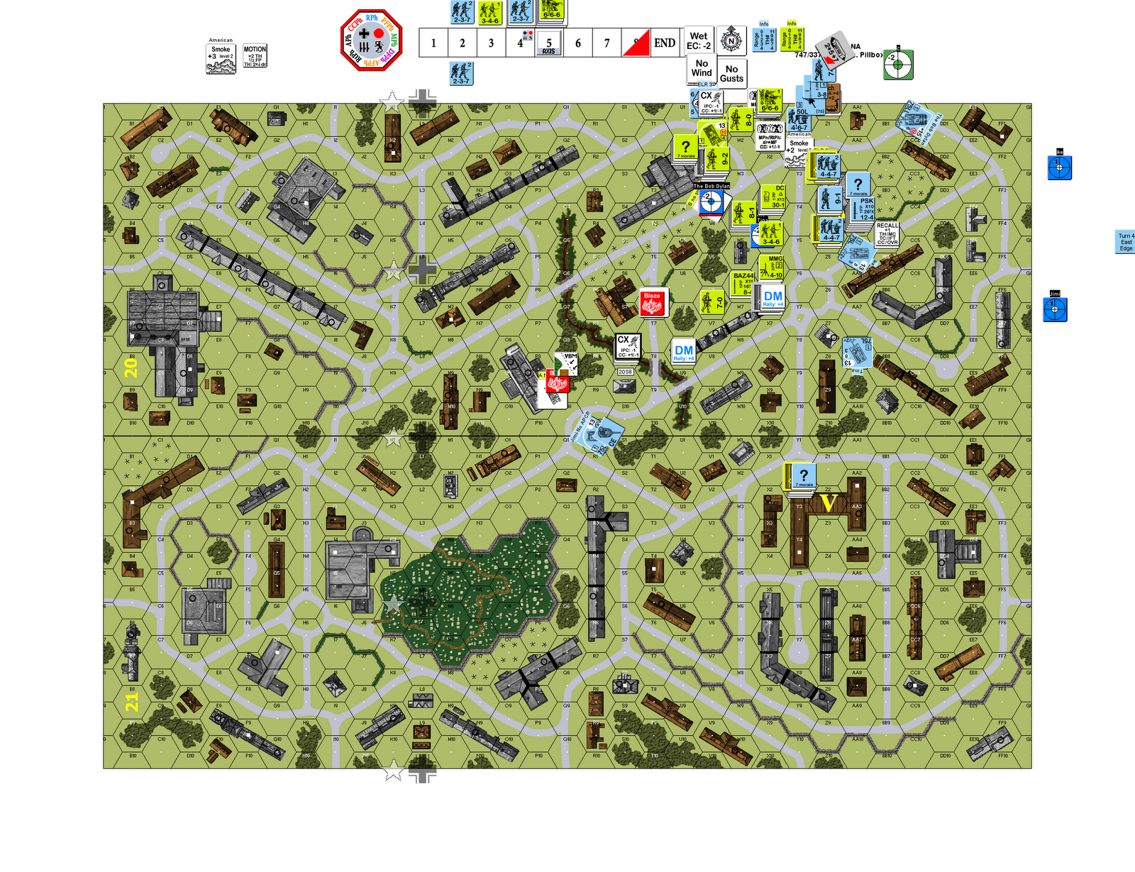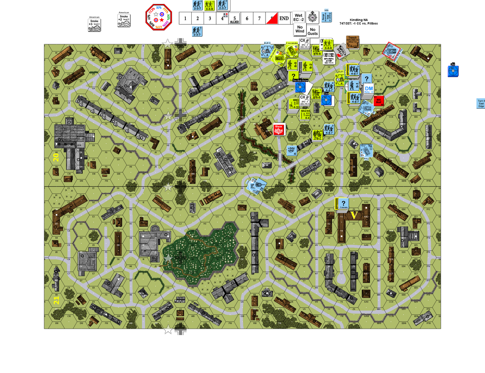 Below is the scene at the beginning of American Turn 5. German tanks are closing in and the Americans are still not across the $@#&ing street.